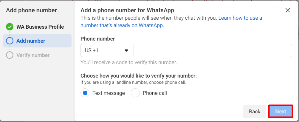 Well, after providing your phone number and choosing the verifying option click on the next button.